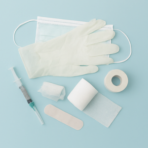 Luvas, seringas, gazes, máscaras, aventais e muito mais.
